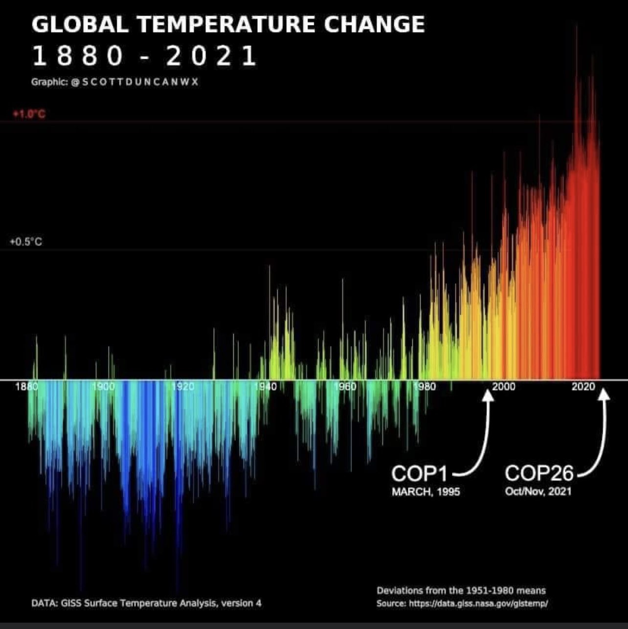 These gases are heating our planet with no evidence of any slowdown. No significant progress has been made to stop these emissions since the first COP in 1995, and the warming of the planet continues.
