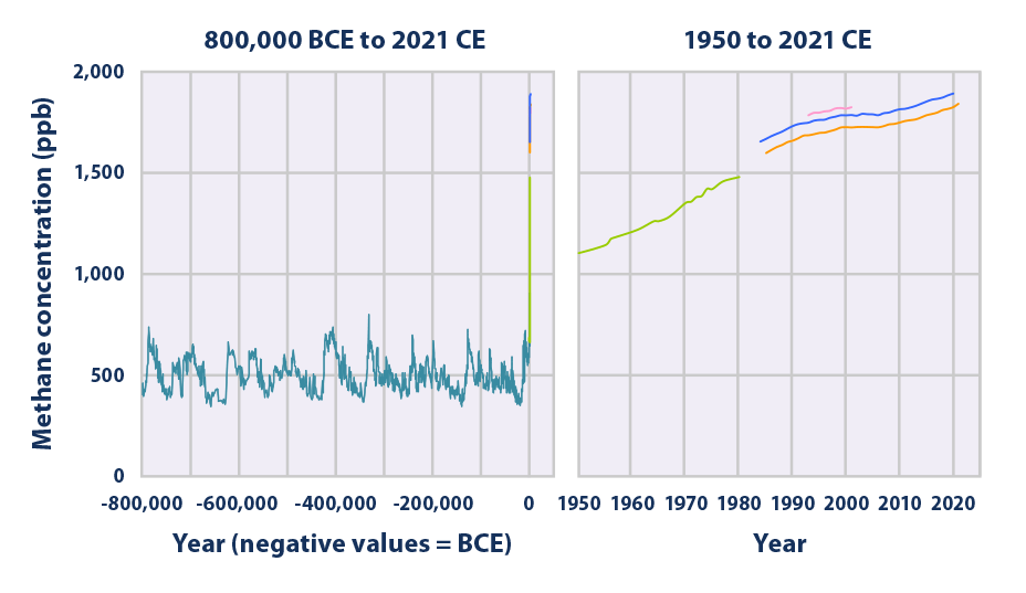 Global atmospheric methane concentration reached 1,920 ppb for the first time in over 800,000 years. The following chart is just incredible and very discouraging.