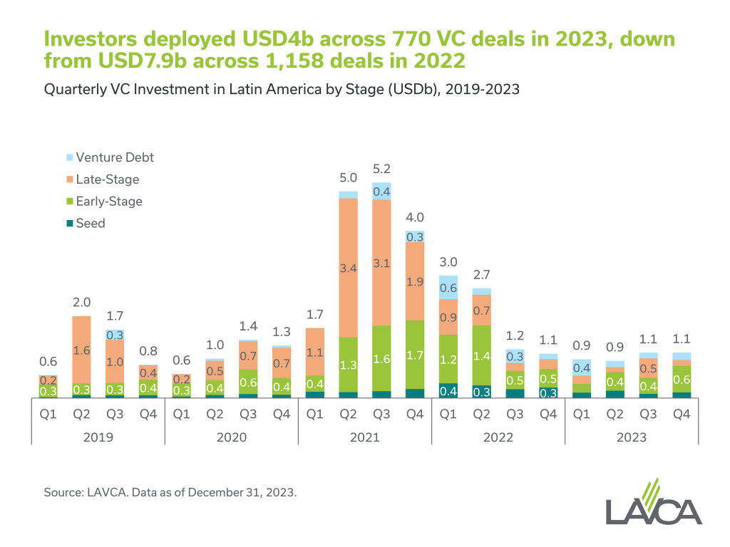To sum up, 2023 was characterized by a more measured approach to venture investing and a period of reflection. With the cycle seemingly at its bottom, we should anticipate a resurgence of investment activity in Latin America for 2024.